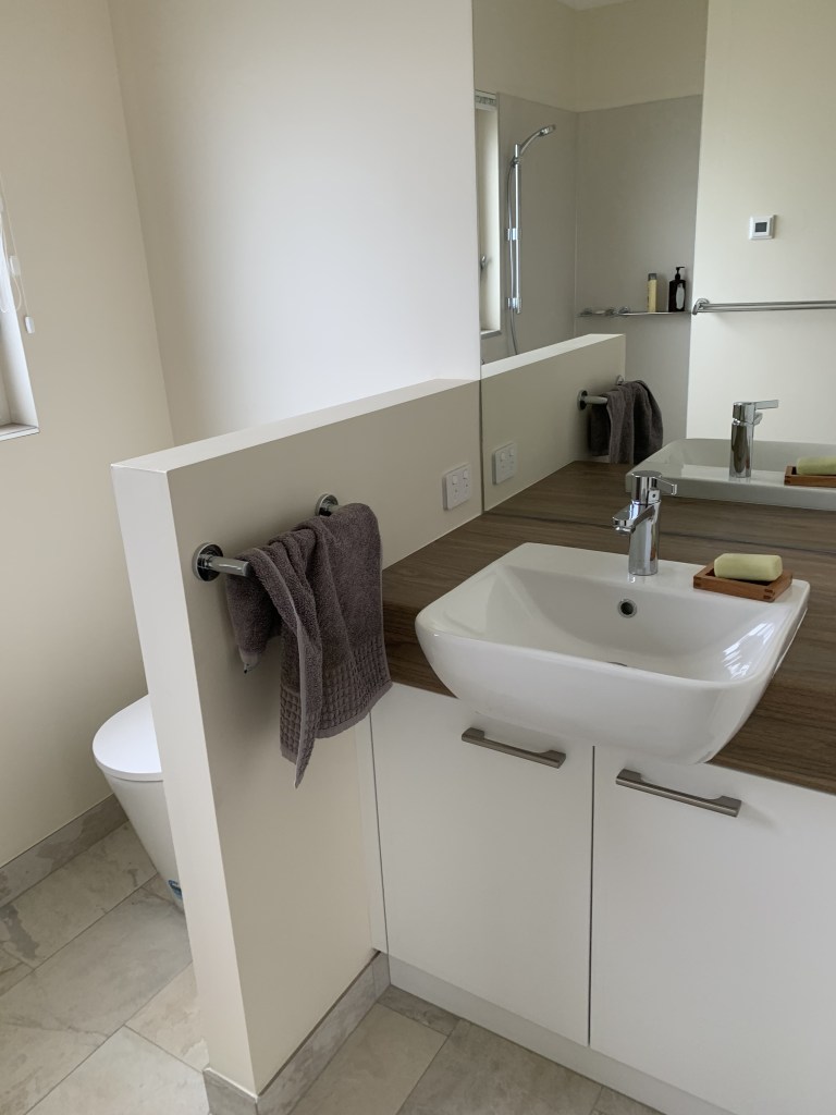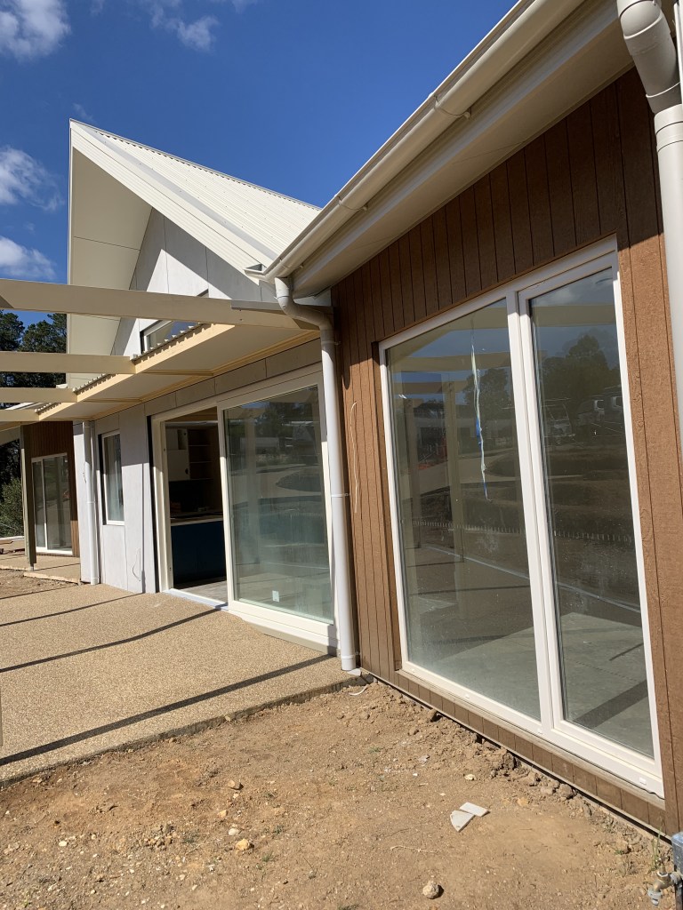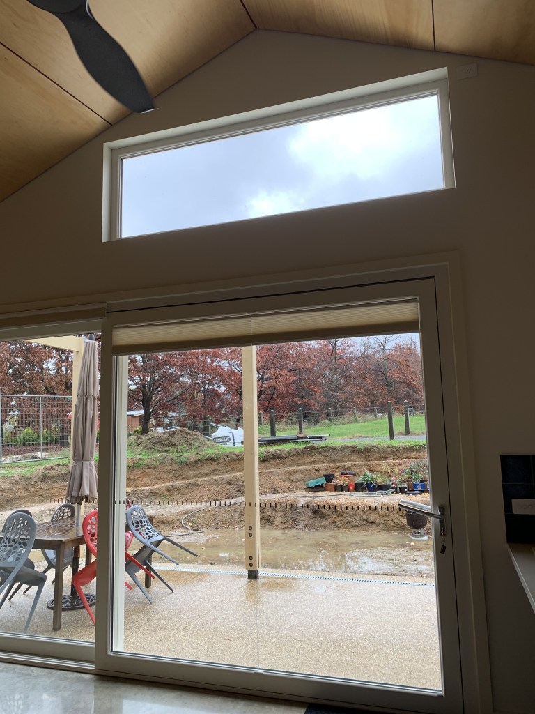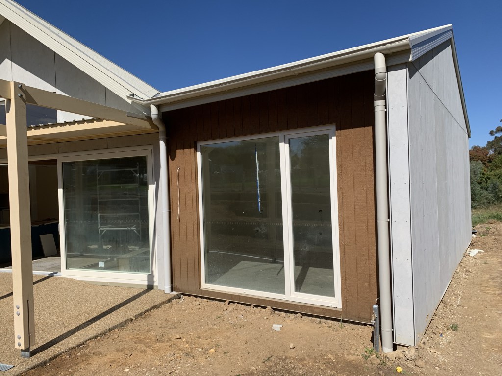 This ‘passive house’ inspired new build uses very strict passive solar design to achieve outstanding thermal performance. The client brief asked for a minimum 8.0 star easy-living adaptable retirement house, with plenty of garden space on a 700m2 block in town. We reached 8.4 stars (in a cold climate) using additional insulation and strong passive solar design. An airtight membrane and heat recovery ventilation system ensures year round comfort. Along with a workshop, double carport for camper storage, 10,000l water tanks, and amazing thermal comfort, ‘clever design’ kept the house footprint minimal.