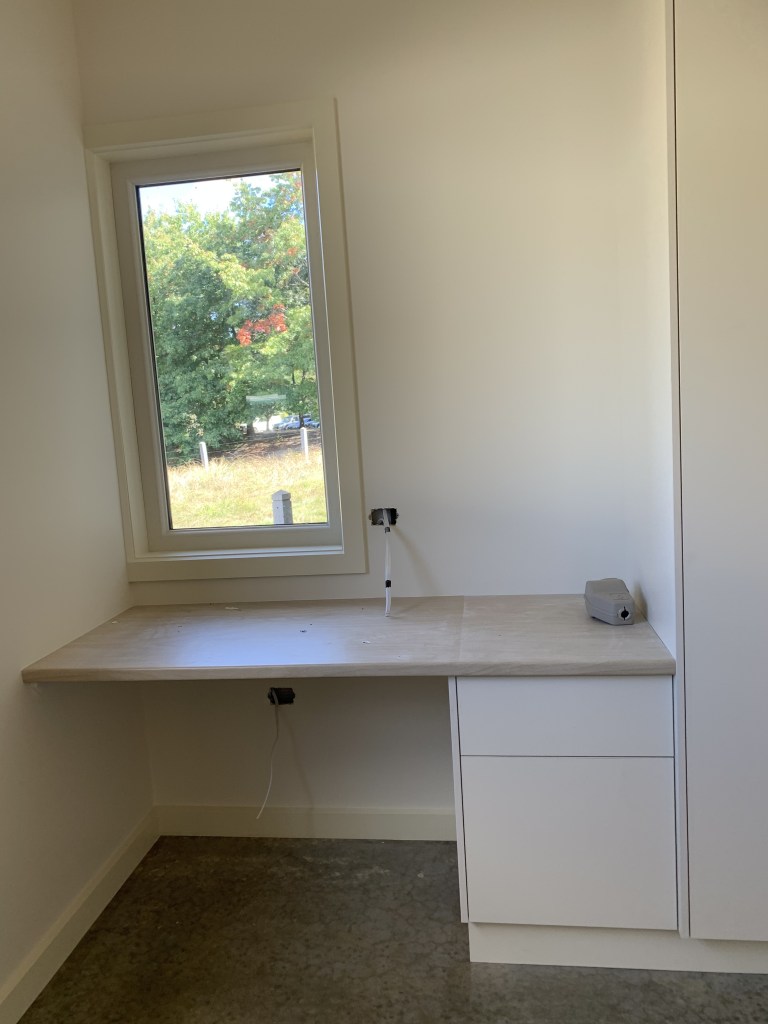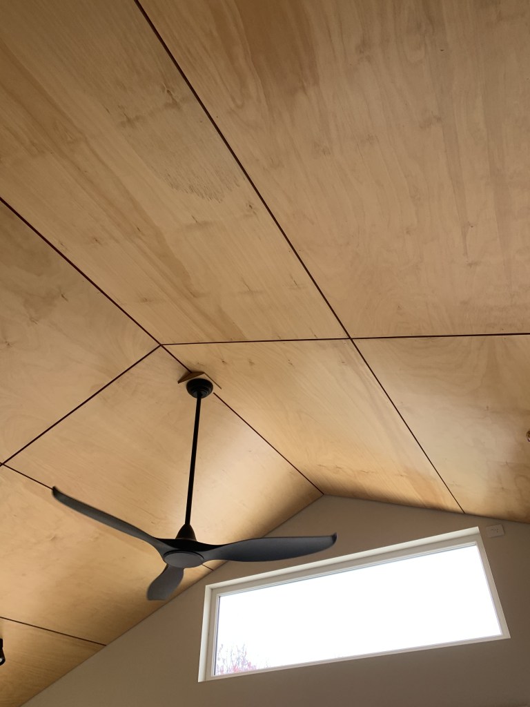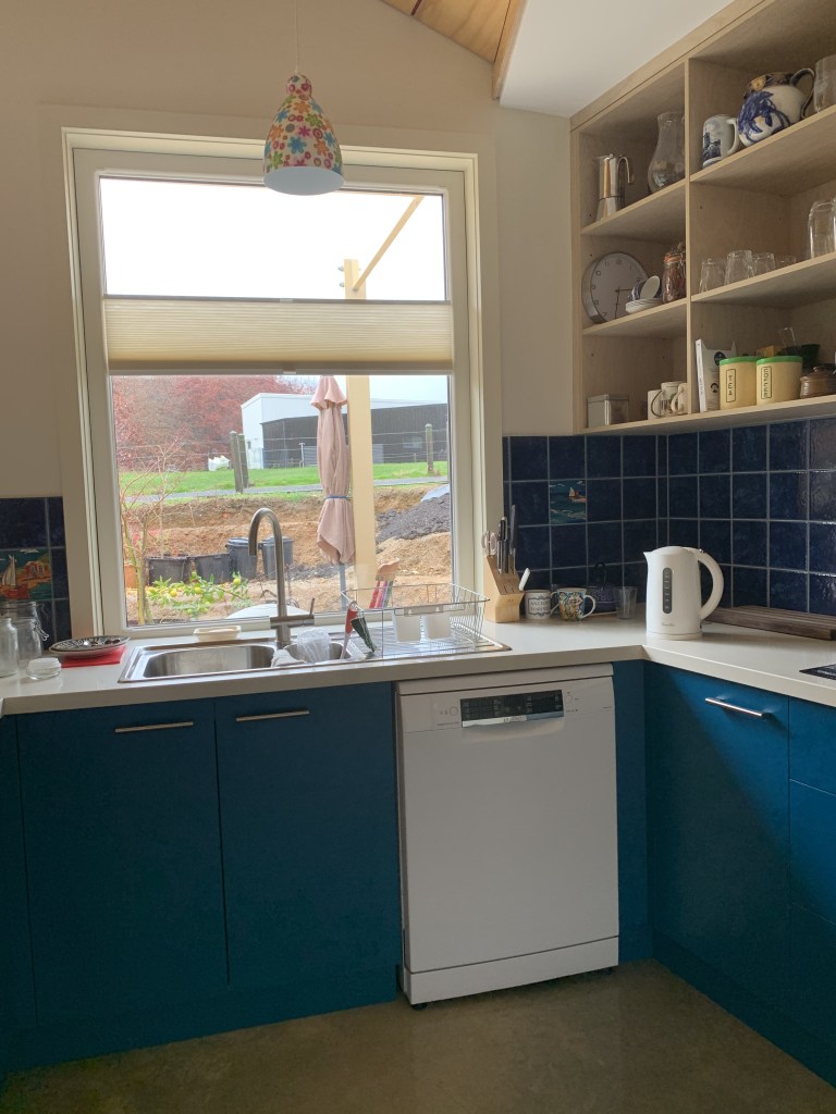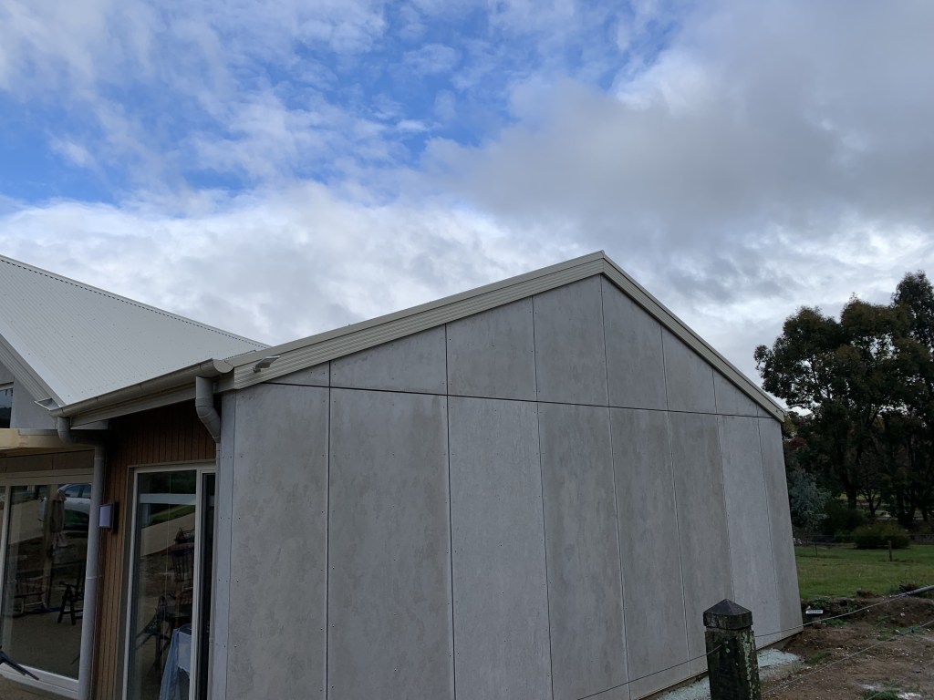 This ‘passive house’ inspired new build uses very strict passive solar design to achieve outstanding thermal performance. The client brief asked for a minimum 8.0 star easy-living adaptable retirement house, with plenty of garden space on a 700m2 block in town. We reached 8.4 stars (in a cold climate) using additional insulation and strong passive solar design. An airtight membrane and heat recovery ventilation system ensures year round comfort. Along with a workshop, double carport for camper storage, 10,000l water tanks, and amazing thermal comfort, ‘clever design’ kept the house footprint minimal.