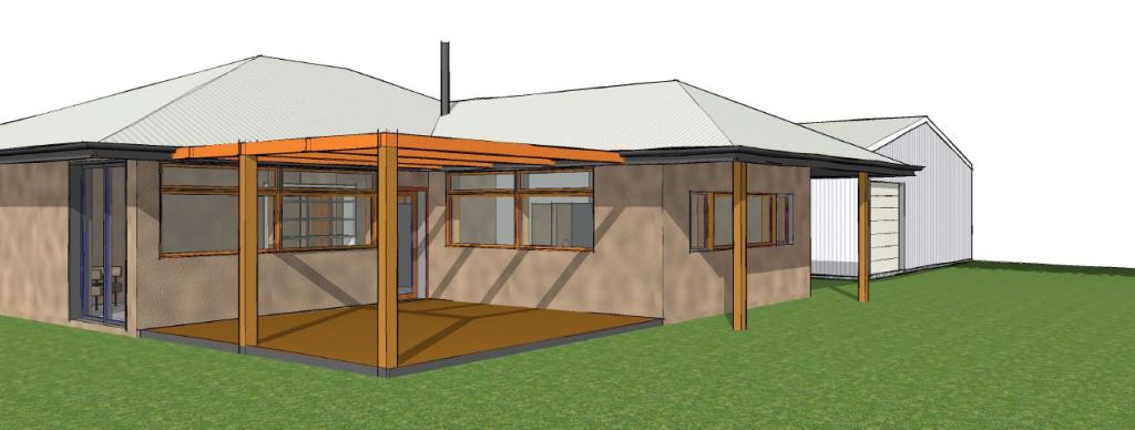 A simple to build, hempcrete house in a pleasant rural valley. The owners are transitioning to a small-farm permaculture-based lifestyle and wanted a comfortable, natural house they could build themselves. Expansive views to the West are taken in whilst controlling summer heat with vine covered pergola and large verandah on that side.