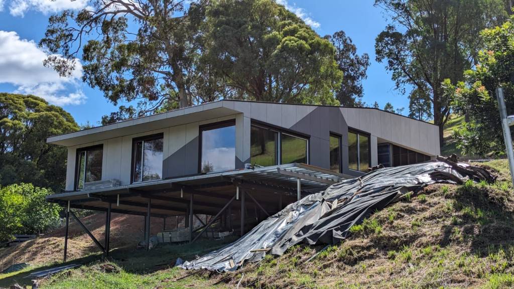 A steep challenging site, bushfire controls, and awkward orientation were no deterrent for this client. Creative design, clever structure, and certified passive house construction methods and detailing were used to envision an efficient and comfortable house that maximises alpine views and connection to the stunning setting.